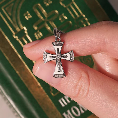 Подвеска с 12 бриллиантами природными, 0.04 карат, огранка круг 17 граней, цвет 2, чистота 2, тип огранки Б; эмаль белая; Белое золото 585 пробы.