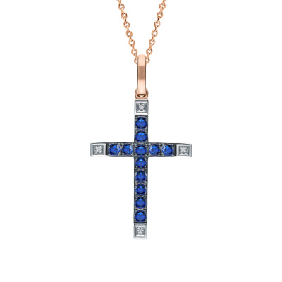 Золотая подвеска с бриллиантами природными и сапфирами природными