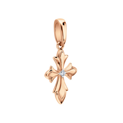 Подвеска с 1 бриллиантом природным, 0.01 карат, огранка круг 57 граней, цвет 3, чистота 6, тип огранки А; Розовое золото 585 пробы.