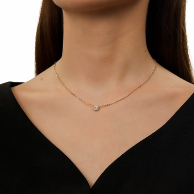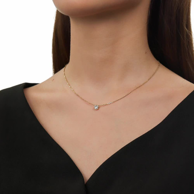 Подвеска с 1 бриллиантом природным, 0.04 карат, огранка круг 57 граней, цвет 3, чистота 5, тип огранки А; Желтое золото 585 пробы.