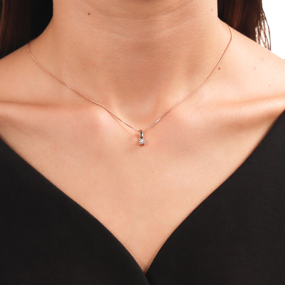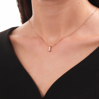 Подвеска с 1 бриллиантом природным, 0.01 карат, огранка круг 57 граней, цвет 4, чистота 5, тип огранки А; Розовое и белое золото 585 пробы.