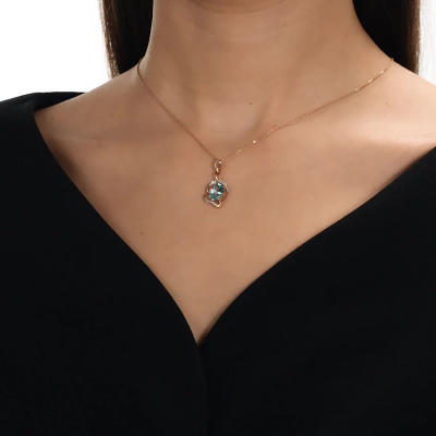 Подвеска с 24 бриллиантами природными, 0.04 карат, огранка круг 17 граней, цвет 2, чистота 2, тип огранки А; 1 топазом скай природным, 2.09 карат; Розовое золото 585 пробы.