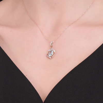 Подвеска с 24 бриллиантами природными, 0.03 карат, огранка круг 17 граней, цвет 2, чистота 2, тип огранки Б; 1 топазом, 2.01 карат; Розовое золото 585 пробы.
