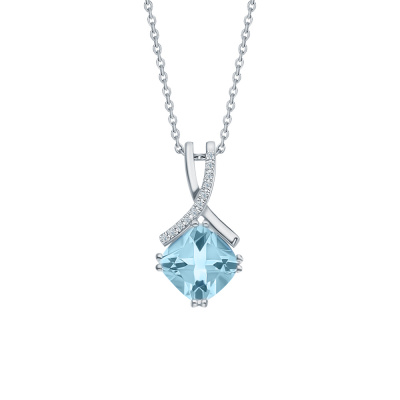 Подвеска с 11 бриллиантами природными, 0.02 карат, огранка круг 17 граней, цвет 2, чистота 2, тип огранки А; 1 топазом скай природным, 1.81 карат; Белое золото 585 пробы.