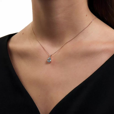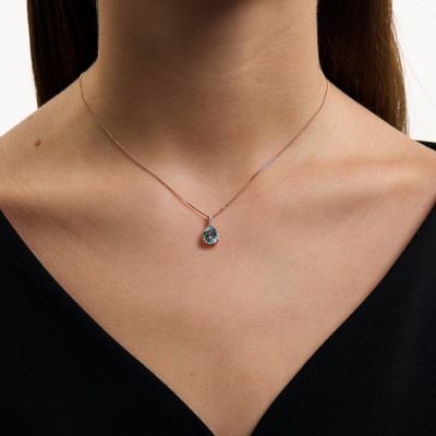 Подвеска с 4 бриллиантами природными, 0.007 карат, огранка круг 17 граней, цвет 2, чистота 2, тип огранки А; 1 топазом скай природным, 1.79 карат; Розовое золото 585 пробы.