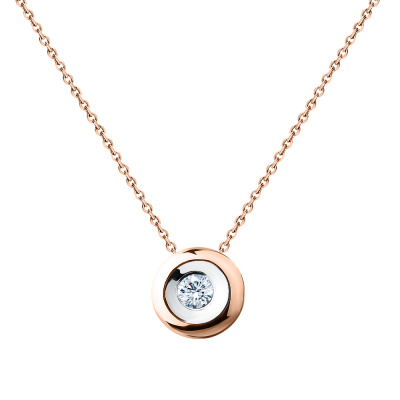 Подвеска с 1 бриллиантом природным, 0.04 карат, огранка круг 57 граней, цвет 3, чистота 5, тип огранки А; Розовое золото 585 пробы.
