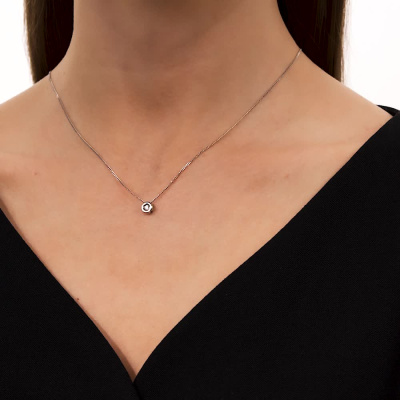 Подвеска с 1 бриллиантом природным, 0.04 карат, огранка круг 57 граней, цвет 3, чистота 5, тип огранки А; Белое золото 585 пробы.