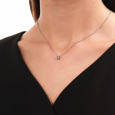 Подвеска с 1 бриллиантом природным, 0.005 карат, огранка круг 17 граней, цвет 2, чистота 2, тип огранки Б; Белое золото 585 пробы.