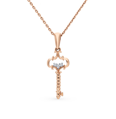 Подвеска с 3 бриллиантами природными, 0.01 карат, огранка круг 17 граней, цвет 2, чистота 2, тип огранки А; Розовое золото 585 пробы.