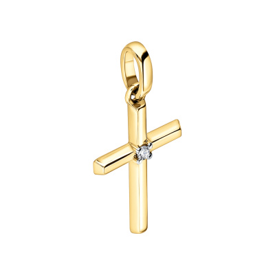 Подвеска с 1 бриллиантом природным, 0.01 карат, огранка круг 57 граней, цвет 4, чистота 6, тип огранки А; Желтое золото 585 пробы.