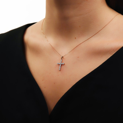 Подвеска с 11 бриллиантами природными, 0.6 карат, огранка круг 57 граней, цвет 4, чистота 5, тип огранки А; Розовое золото 585 пробы.
