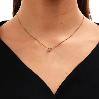 Подвеска с 1 бриллиантом природным, 0.15 карат, огранка круг 57 граней, цвет 3, чистота 6; Желтое золото 585 пробы.