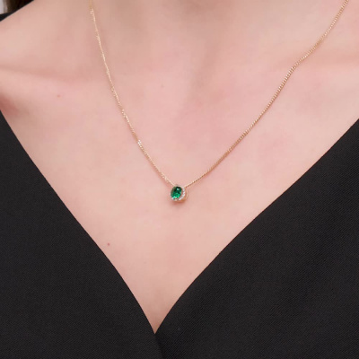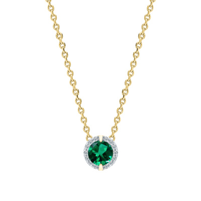Подвеска с 14 бриллиантами природными, 0.05 карат, огранка круг 17 граней, цвет 2, чистота 2, тип огранки Б; 1 гидротермальным изумрудом, 0.41 карат; Желтое золото 585 пробы.