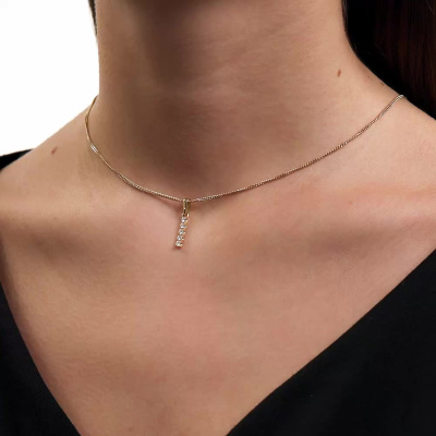 Подвеска с 5 бриллиантами природными, 0.13 карат, огранка круг 57 граней, цвет 4, чистота 6, тип огранки А; Желтое золото 585 пробы.