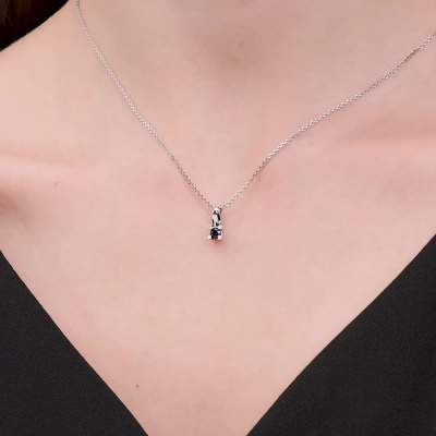 Подвеска с 4 бриллиантами природными, 0.009 карат, огранка круг 17 граней, цвет 2, чистота 2, тип огранки Б; 1 сапфиром природным, 0.15 карат, цвет 2, чистота 2, тип огранки В; Белое золото 585 пробы.