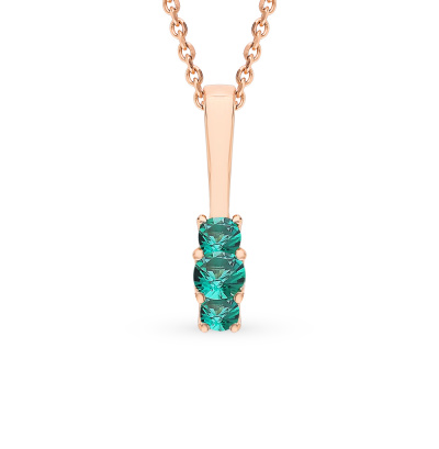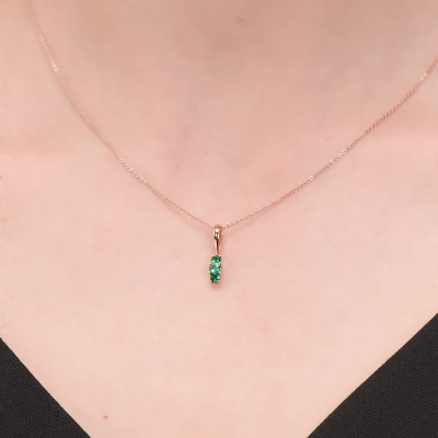 Подвеска с 1 гидротермальным изумрудом, 0.09 карат; 2 гидротермальными изумрудами, 0.11 карат; Розовое золото 585 пробы.