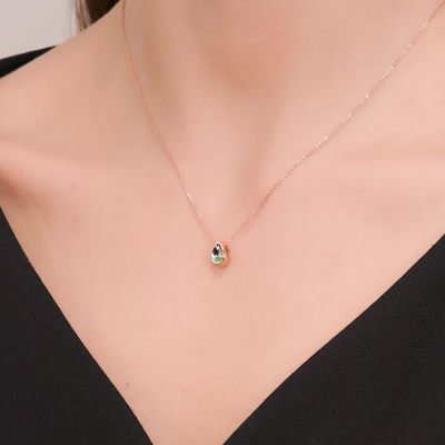 Подвеска с 1 изумрудом природным, 0.03 карат, цвет 3, чистота 3, тип огранки В; Розовое золото 585 пробы.