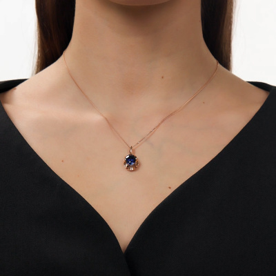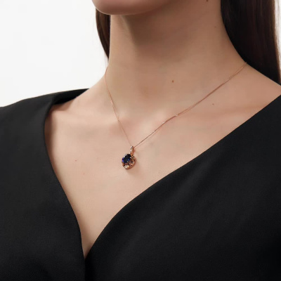 Подвеска с 1 сапфиром синтетическим, 3.05 карат; Розовое золото 585 пробы.