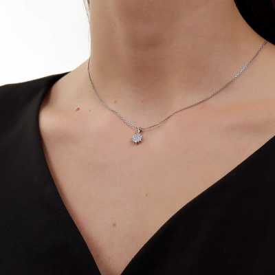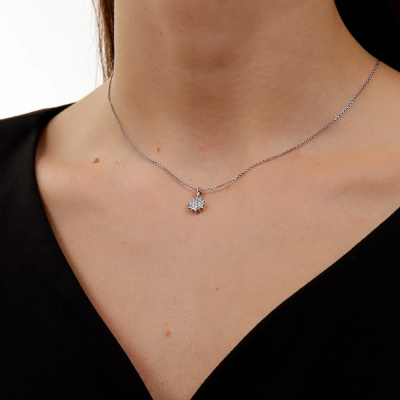 Подвеска с 19 бриллиантами природными, 0.18 карат, огранка круг 57 граней, цвет 4, чистота 6, тип огранки А; Белое золото 585 пробы.