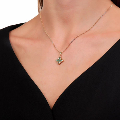 Подвеска с 21 изумрудом природным, 0.1 карат, цвет 3, чистота 3, тип огранки В; Желтое и белое золото 585 пробы.