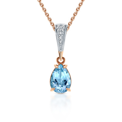 Подвеска с 4 бриллиантами природными, 0.01 карат, огранка круг 17 граней, цвет 2, чистота 2, тип огранки А; 3 бриллиантами природными, 0.005 карат, огранка круг 17 граней, цвет 2, чистота 2, тип огранки А; 1 топазом свисс природным, 0.69 карат; Розовое золото 585 пробы.