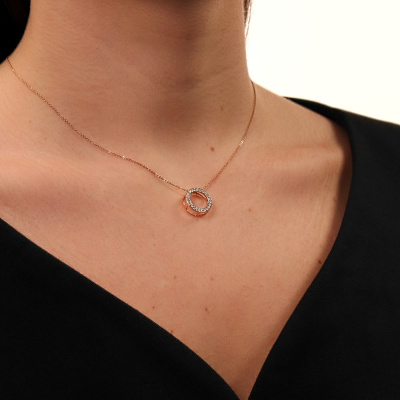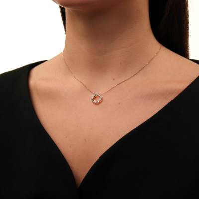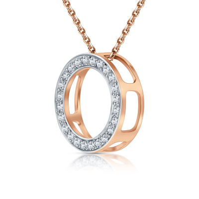 Подвеска с 24 бриллиантами природными, 0.16 карат, огранка круг 57 граней, цвет 4, чистота 5, тип огранки А; Розовое золото 585 пробы.