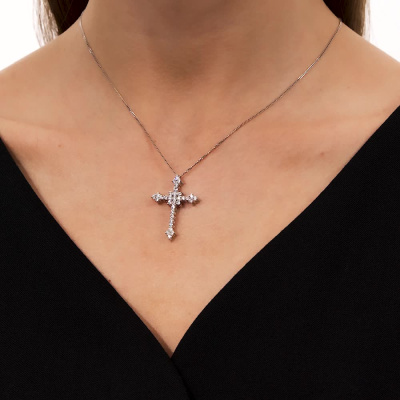 Подвеска с 33 бриллиантами природными, 0.92 карат, огранка круг 57 граней, цвет 3, чистота 6, тип огранки А; Белое золото 585 пробы.