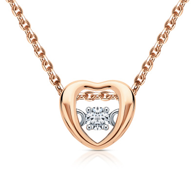 Подвеска с 1 бриллиантом природным, 0.04 карат, огранка круг 57 граней, цвет 3, чистота 6, тип огранки А; Розовое и белое золото 585 пробы.