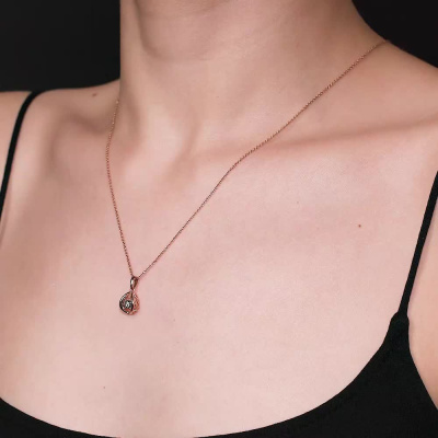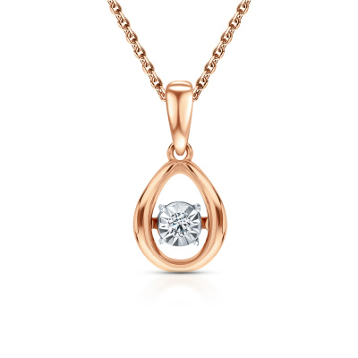 Подвеска с 1 бриллиантом природным, 0.02 карат, огранка круг 57 граней, цвет 3, чистота 6, тип огранки А; Розовое и белое золото 585 пробы.