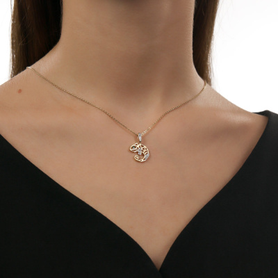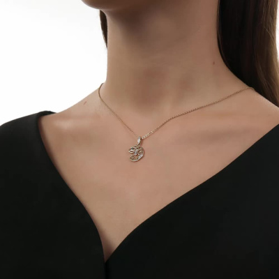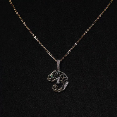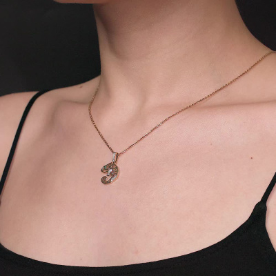Подвеска с 12 бриллиантами природными, 0.05 карат, огранка круг 17 граней, цвет 2, чистота 2, тип огранки Б; 1 изумрудом природным, 0.01 карат, цвет 3, чистота 3, тип огранки В; Желтое золото 585 пробы.