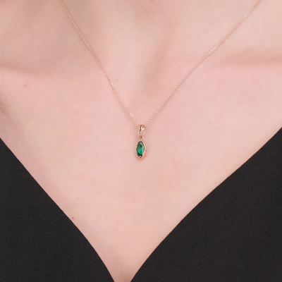 Подвеска с 1 гидротермальным изумрудом, 0.45 карат; Розовое золото 585 пробы.