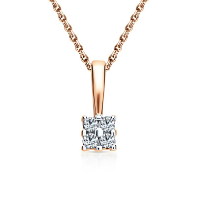Подвеска с 4 бриллиантами природными, 0.12 карат, огранка круг 57 граней, цвет 3, чистота 6, тип огранки А; Розовое золото 585 пробы.