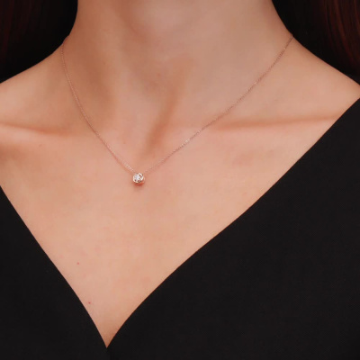 Подвеска с 1 бриллиантом природным, 0.01 карат, огранка круг 57 граней, цвет 3, чистота 6, тип огранки А; 6 бриллиантами природными, 0.02 карат, огранка круг 17 граней, цвет 2, чистота 2, тип огранки А; Розовое золото 585 пробы.