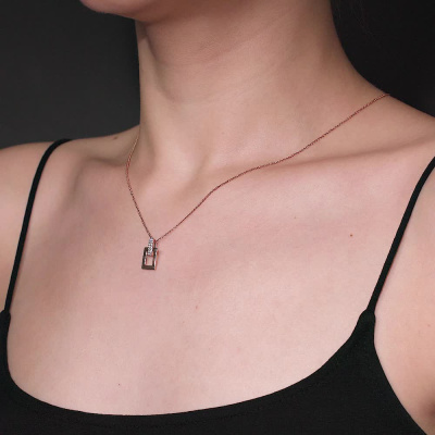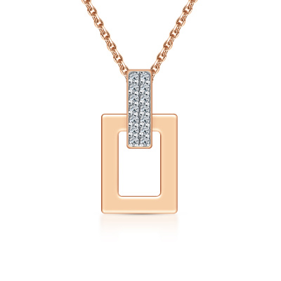 Подвеска с 14 бриллиантами природными, 0.06 карат, огранка круг 17 граней, цвет 2, чистота 2, тип огранки А; Розовое золото 585 пробы.