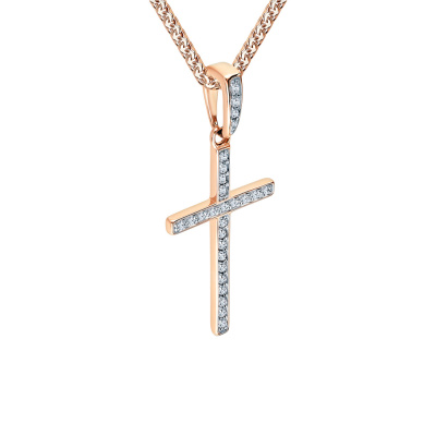 Подвеска с 26 бриллиантами природными, 0.08 карат, огранка круг 17 граней, цвет 2, чистота 2, тип огранки А; Розовое золото 585 пробы.
