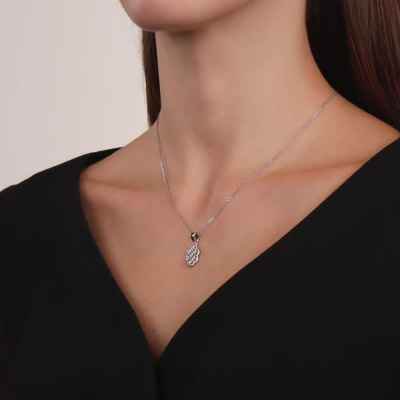 Подвеска с 7 бриллиантами природными, 0.02 карат, огранка круг 17 граней, цвет 2, чистота 4; Серебро 925 пробы.