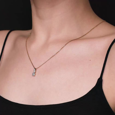 Подвеска с 1 бриллиантом природным, 0.05 карат, огранка круг 57 граней, цвет 3, чистота 6, тип огранки А; 6 бриллиантами природными, 0.12 карат, огранка круг 57 граней, цвет 3, чистота 6, тип огранки А; 6 бриллиантами природными, 0.02 карат, огранка круг 17 граней, цвет 2, чистота 2, тип огранки А; Желтое золото 585 пробы.