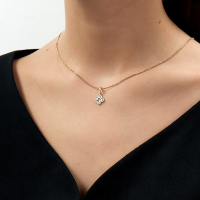 Подвеска с 24 бриллиантами природными, 0.07 карат, огранка круг 57 граней, цвет 3, чистота 5, тип огранки А; Желтое золото 585 пробы.