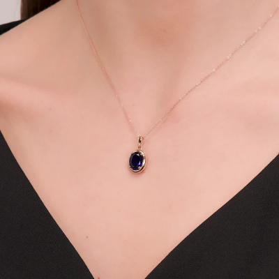 Подвеска с 1 сапфиром синтетическим, 2.17 карат; Розовое золото 585 пробы.