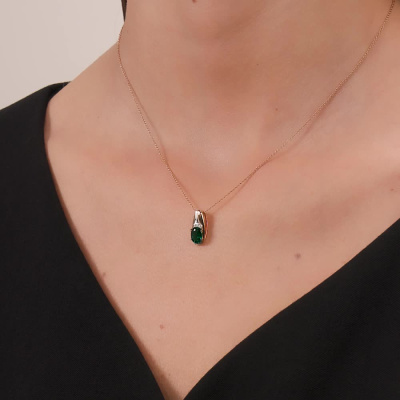Подвеска с 4 бриллиантами природными, 0.01 карат, огранка круг 17 граней, цвет 2, чистота 2; 1 гидротермальным изумрудом, 0.67 карат; Розовое золото 585 пробы.