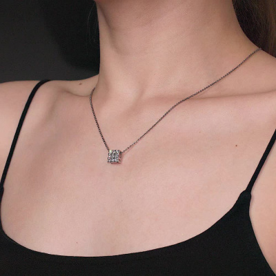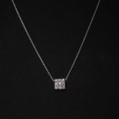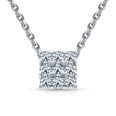 Подвеска с 1 бриллиантом природным, 0.09 карат, огранка круг 57 граней, цвет 3, чистота 6, тип огранки А; 8 бриллиантами природными, 0.6 карат, огранка круг 57 граней, цвет 3, чистота 6, тип огранки А; Белое золото 585 пробы.