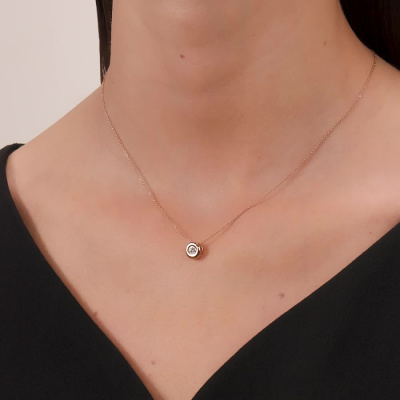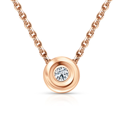 Подвеска с 1 бриллиантом природным, 0.11 карат, огранка круг 57 граней, цвет 3, чистота 6, тип огранки А; Розовое золото 585 пробы.