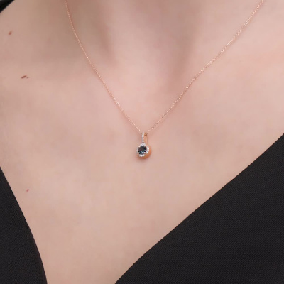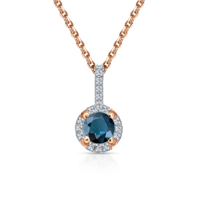 Подвеска с 17 бриллиантами природными, 0.04 карат, огранка круг 17 граней, цвет 2, чистота 2, тип огранки А; 1 топазом лондон природным, 0.29 карат; Розовое золото 585 пробы.