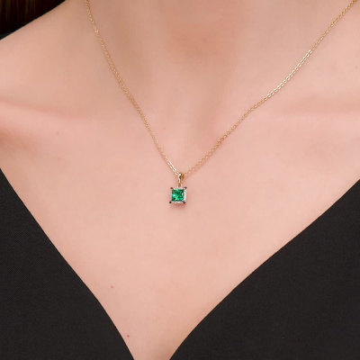 Подвеска с 16 бриллиантами природными, 0.03 карат, огранка круг 17 граней, цвет 2, чистота 2, тип огранки А; 1 гидротермальным изумрудом, 0.49 карат; Желтое золото 585 пробы.