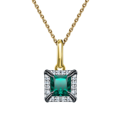Золотая подвеска с бриллиантами природными и изумрудами выращенными