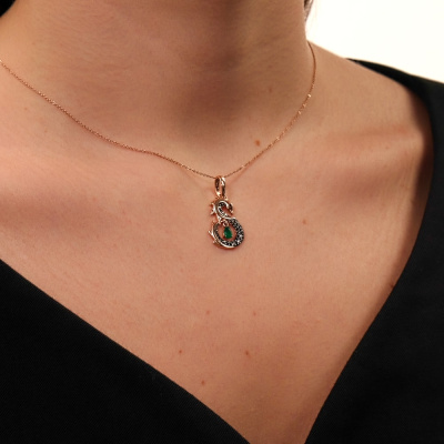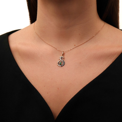 Подвеска с 39 бриллиантами черными природными облагороженными, 0.17 карат, огранка круг 57 граней, цвет 7, чистота 6, тип огранки А; 1 агатом зеленым природным; Розовое золото 585 пробы.