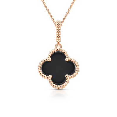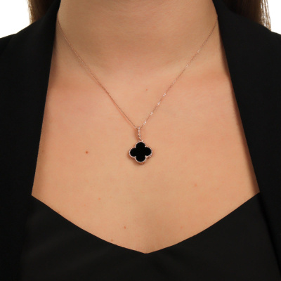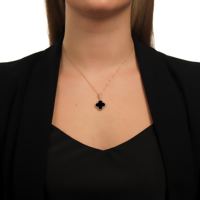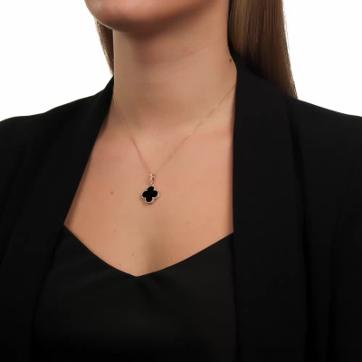 Подвеска с 1 агатом черным природным; Розовое золото 585 пробы.