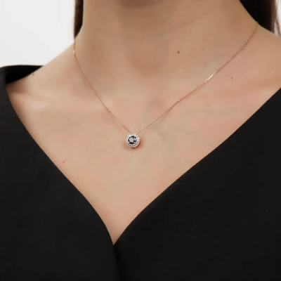 Подвеска с 20 бриллиантами природными, 0.06 карат, огранка круг 17 граней, цвет 2, чистота 2, тип огранки А; 1 александритом синтетическим, 0.92 карат; Розовое золото 585 пробы.