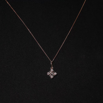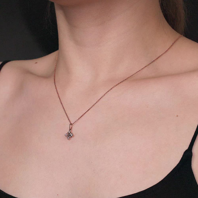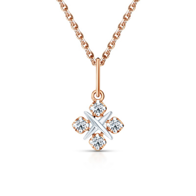 Подвеска с 4 бриллиантами природными, 0.12 карат, огранка круг 57 граней, цвет 3, чистота 6, тип огранки А; Розовое и белое золото 585 пробы.