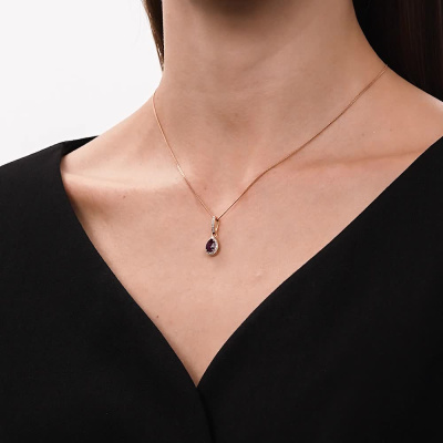Подвеска с 25 бриллиантами природными, 0.07 карат, огранка круг 17 граней, цвет 2, чистота 2, тип огранки А; 1 александритом синтетическим, 0.79 карат; Розовое золото 585 пробы.